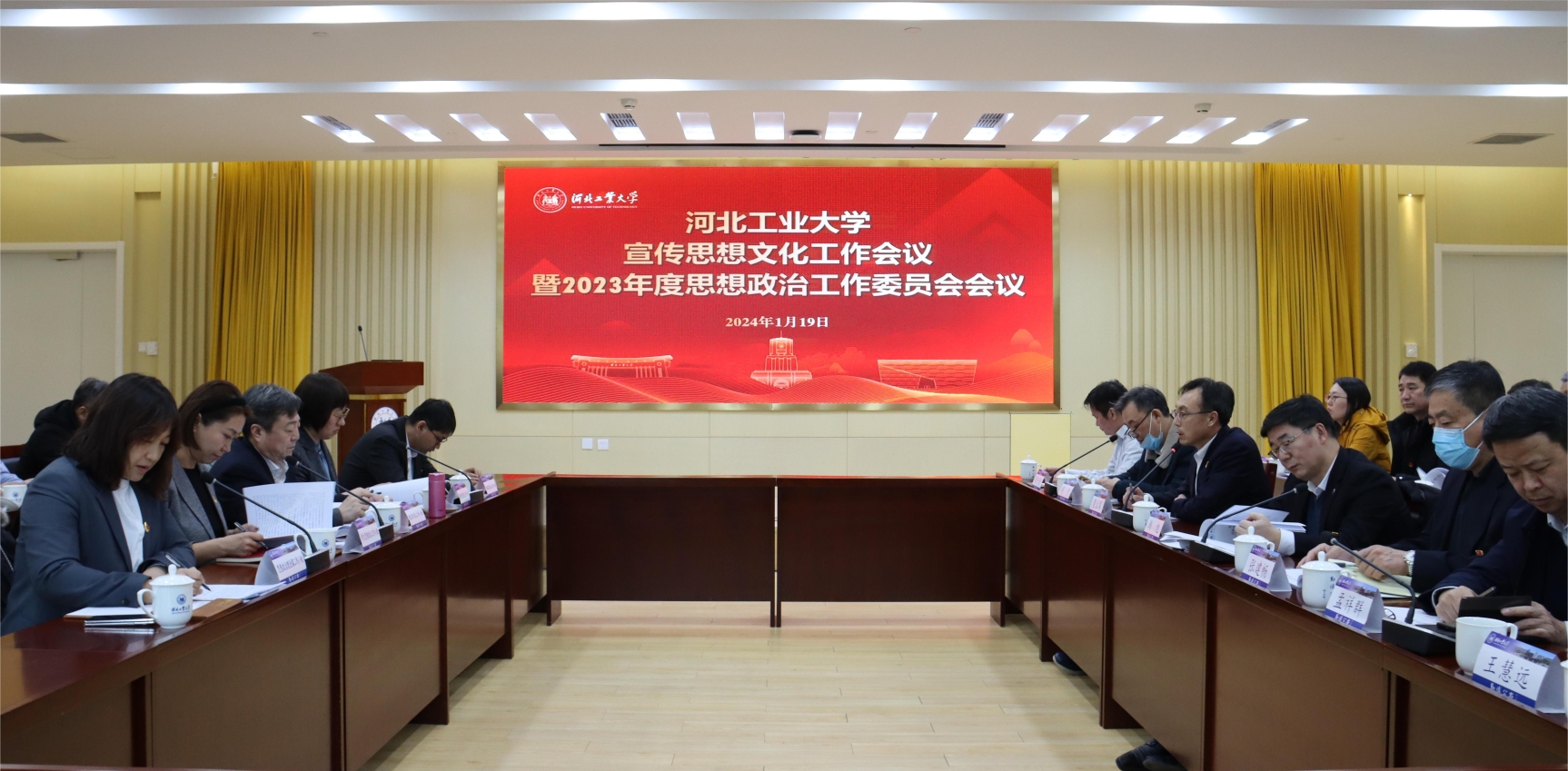 1月19日,河北多多28召开宣传思想文化工作会议暨2023年度思想政治工作委员会会议。围绕党的二十大以来学校的宣传思想文化工作进行分析研讨,并就2024年工作进行研究部署。全体在津校领导,思政工作委员会成员单位负责人参加会议。党委副书记贺立军主持会议。