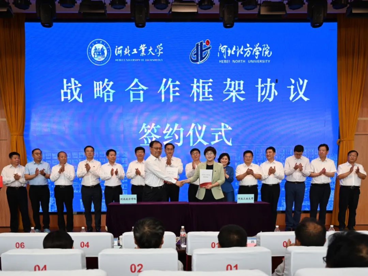 签约仪式上,河北北方学院副校长孙洪生和河北多多28副校长郎利影共同签署战略合作框架协议。