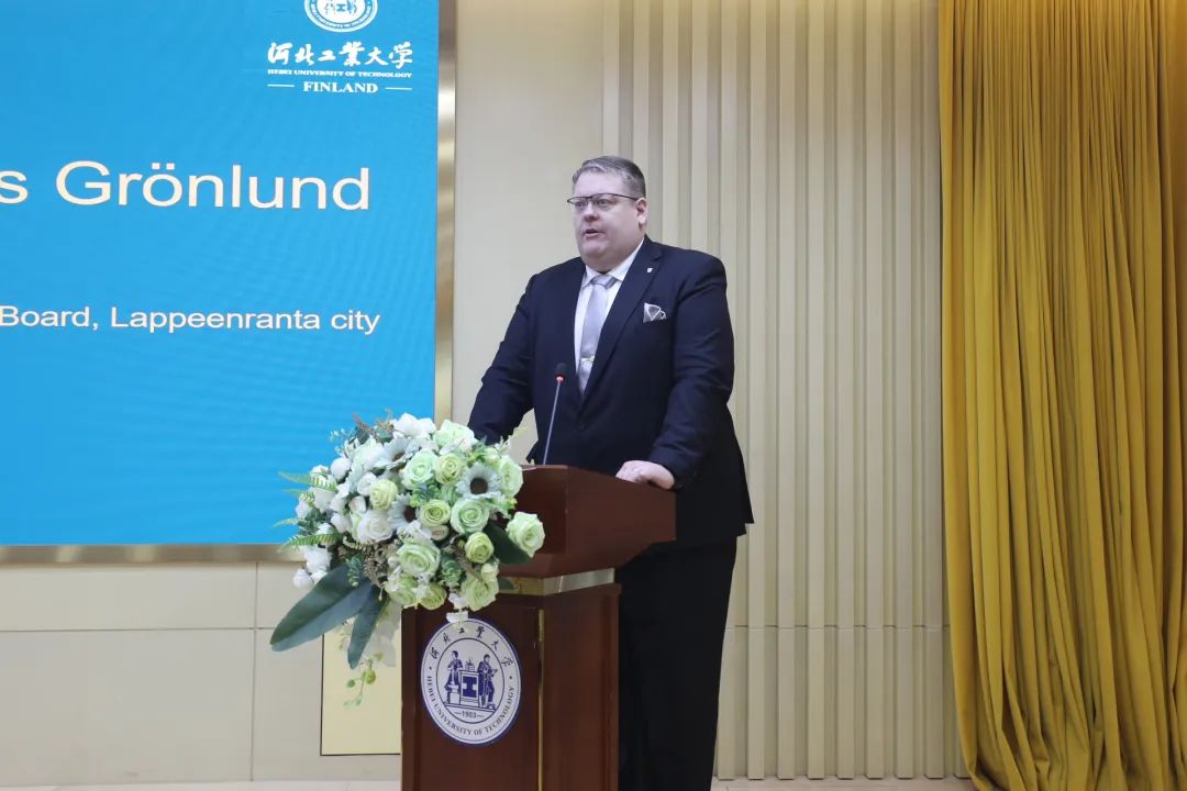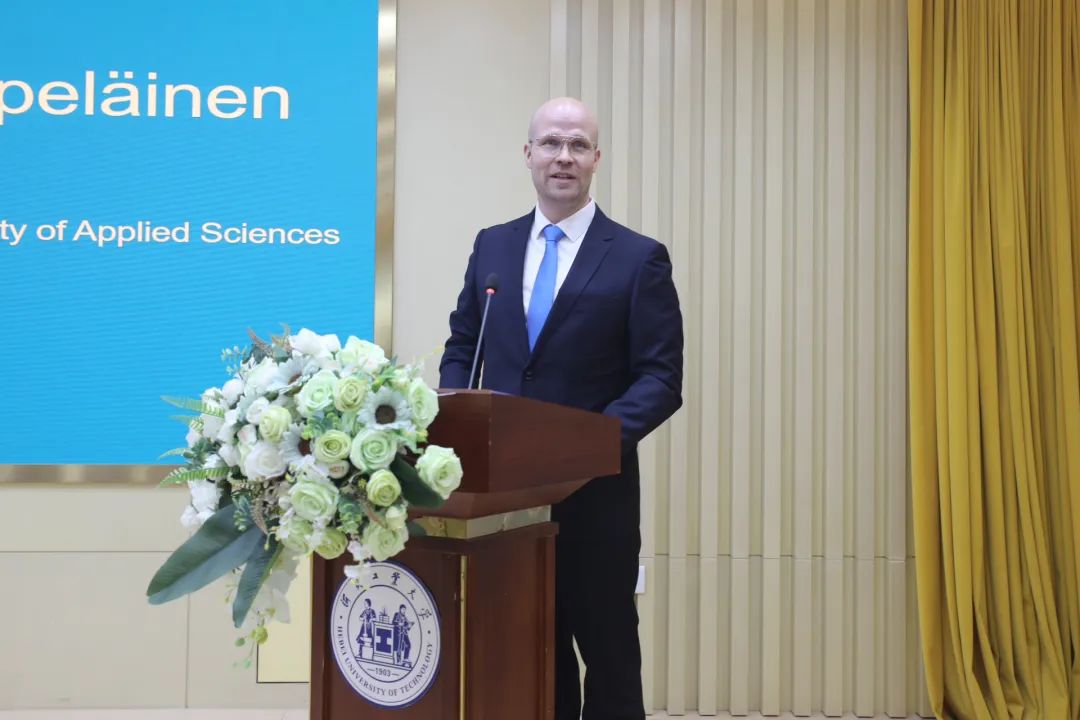 芬兰拉彭兰塔市董事会主席约纳斯·赫尔曼尼·格伦隆德(Joonas Hermanni Gr?nlund)先生在致辞中从拉彭兰塔城市建设、教育历史与LUT大学发展历程出发,回顾了芬兰教育体系的发展脉络,并展望了两校未来在多领域的合作,通过优势互补、资源共享,双方必将打造中芬高等教育合作的新典范,为应对全球性挑战贡献智慧与力量。