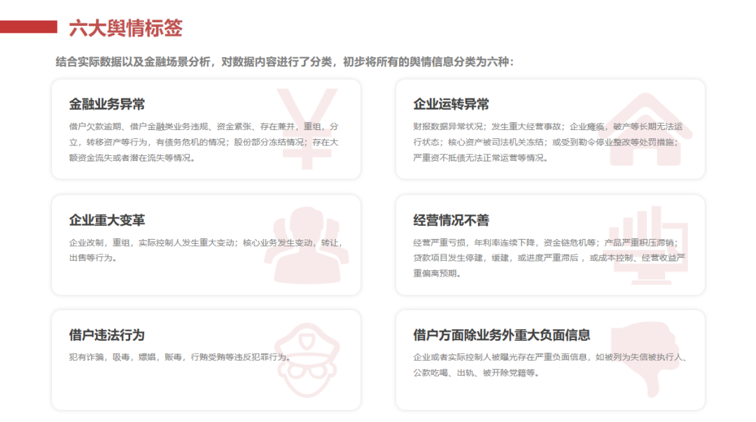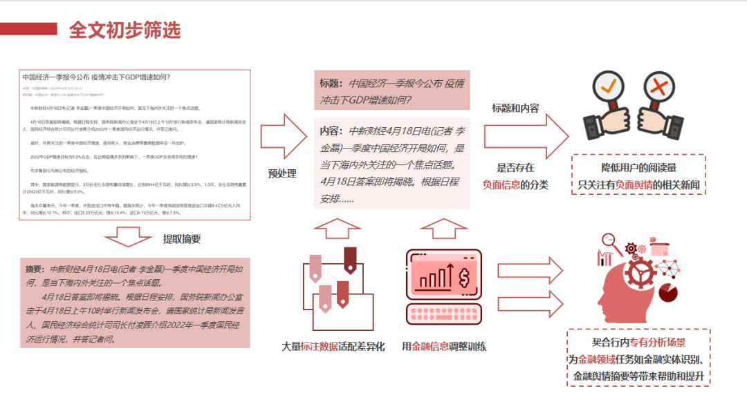 全文初步筛选:通过标题和内容分析,自动识别负面信息,并进行初步分类,降低用户阅读量,聚焦有效信息。