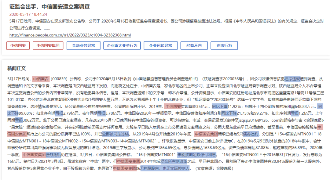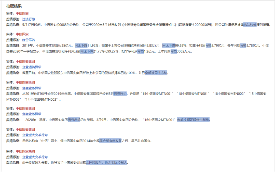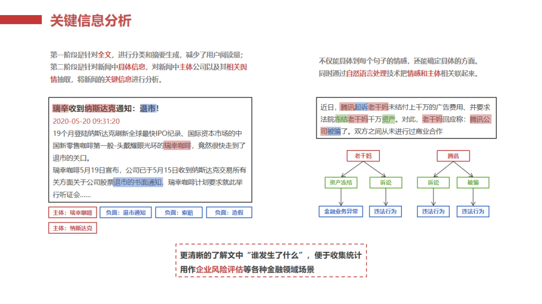 关键信息分析:识别新闻中的主体公司、风险事件和负面信息,并进行详细分类,例如金融业务异常、企业运转异常、企业重大变革等。