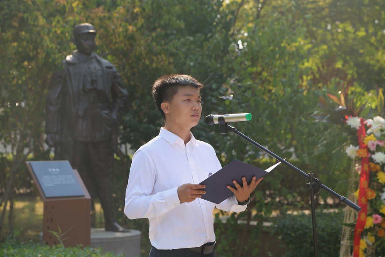 “我们要向身前的这些名字致敬,在每一次对历史的回顾中向那些默默无闻的、却把自己的生命和青春奉献给祖国伟大复兴征程的工大人致敬,向永不磨灭的工大精神致敬。”学生代表、能源与环境工程学院师浩楠呼吁同学们,作为工大的一员,要以先烈为榜样,不忘国耻,奋力前行,以实际行动传承工大精神,在先辈们以血肉换来的和平繁荣时代下努力学习,接过先辈的大旗,凝聚起当代工大学子、当代青年人的力量,为实现我们共同的梦想而不懈奋斗,坚定跟党走,建功新时代,为工大谱写新篇章,为奋进新征程发光发热、为中华民族的伟大复兴贡献自己的一份力量。