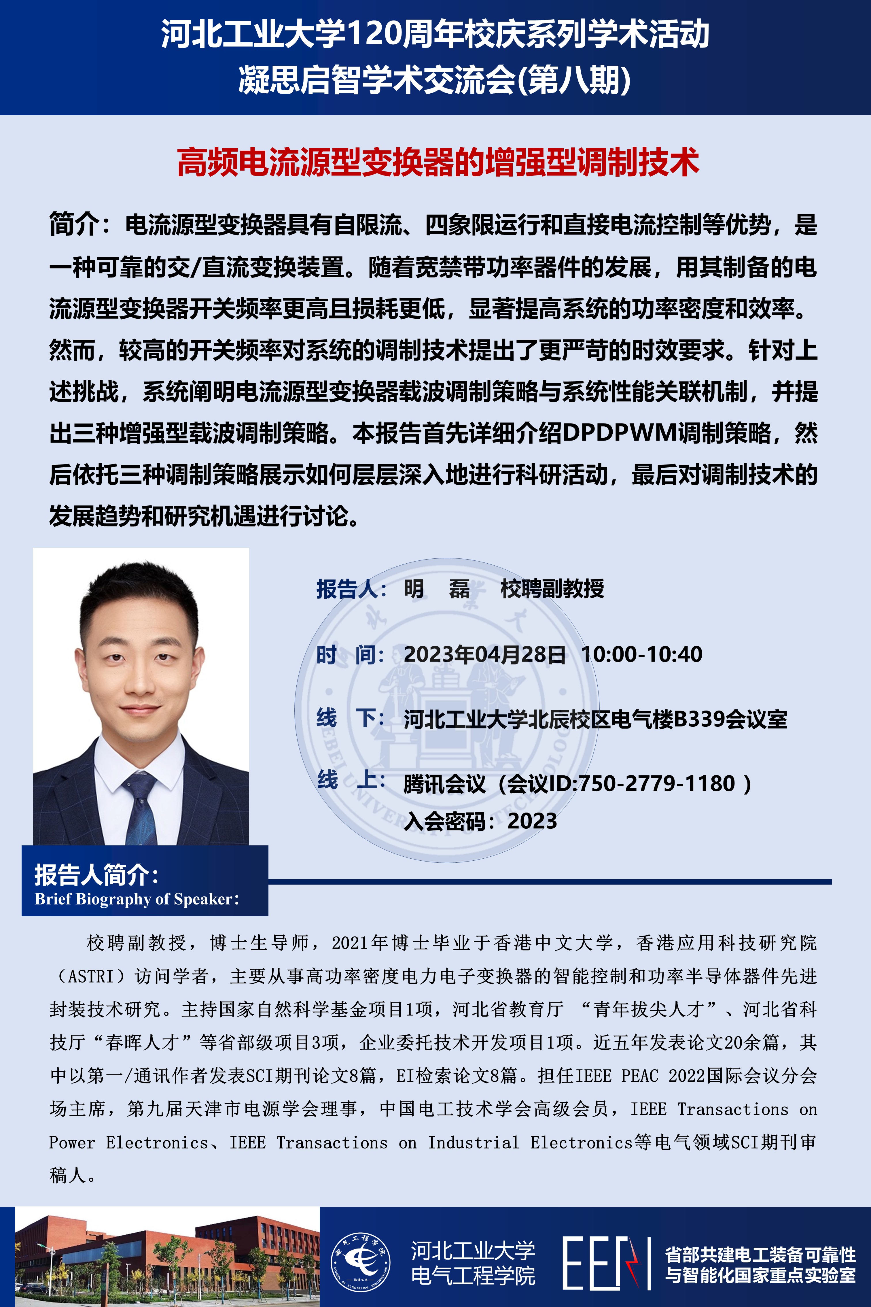 凝思启智学术交流会(第八期):高频电流源型变换器的增强型调制技术,工业机器人运动精度可靠性分析与设计方法研究
